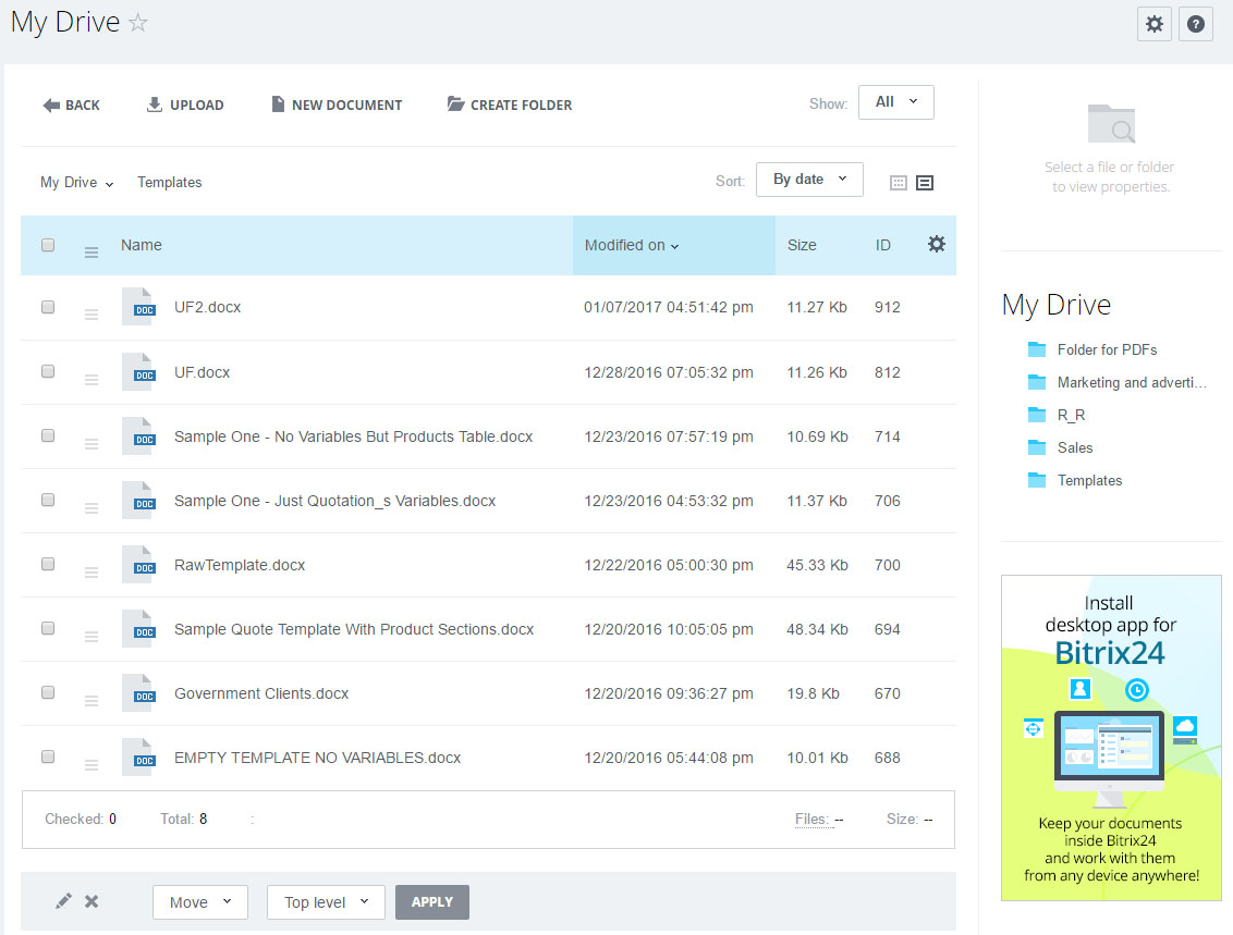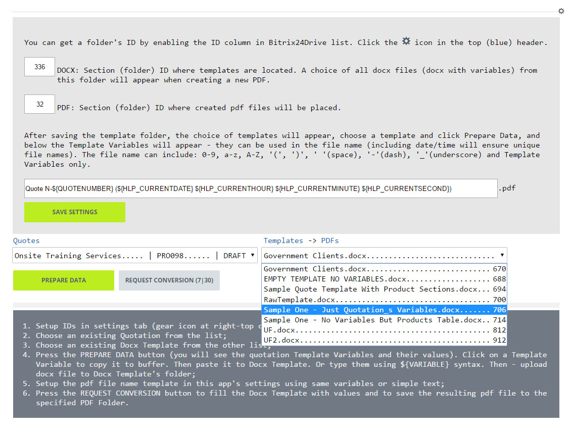 This app allows the creation of PDFs from Quotes in the Bitrix24 CRM using templates that can be built by the user.