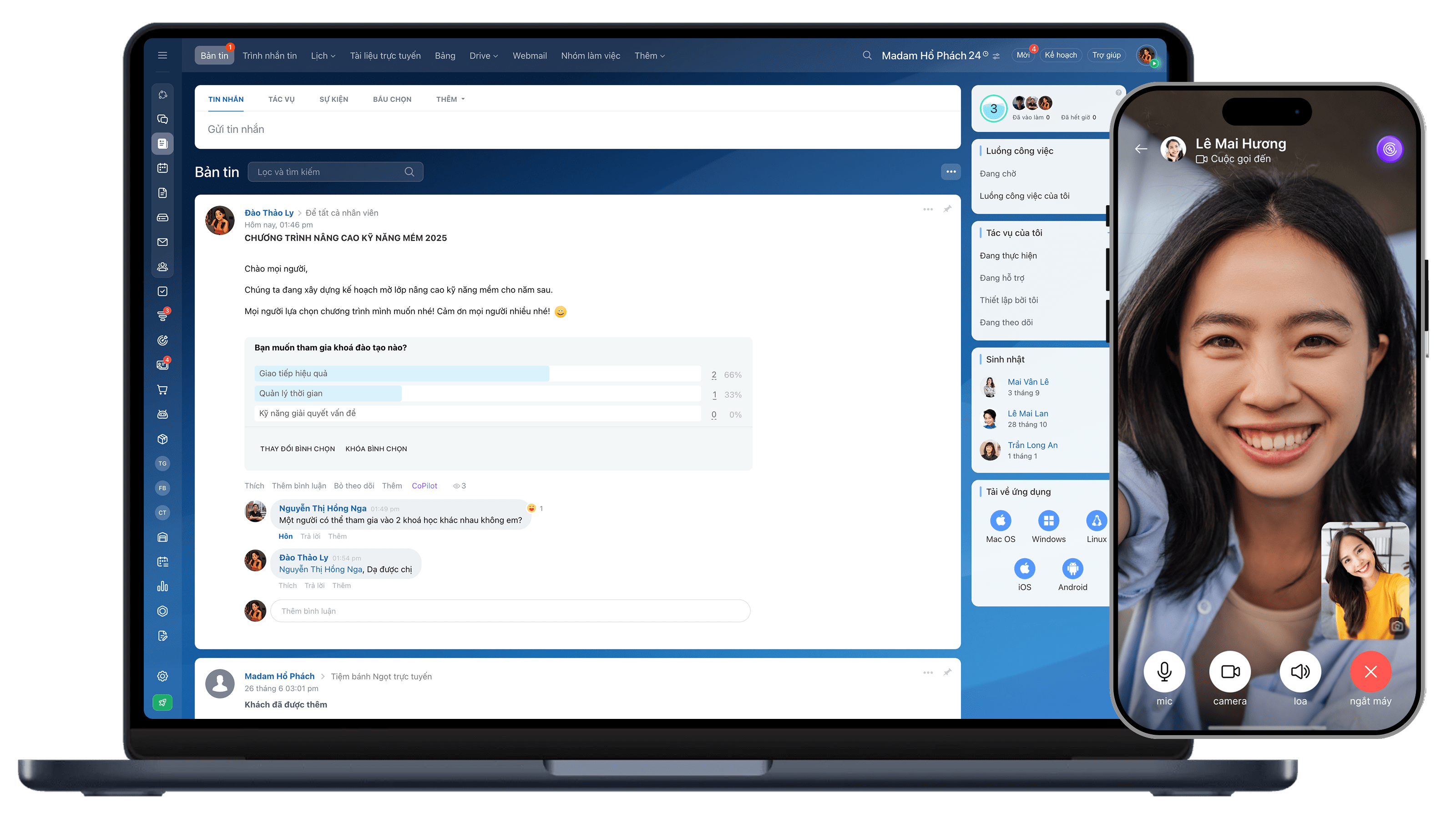 Giao tiếp với đội nhóm của bạn qua trò chuyện và cuộc gọi video