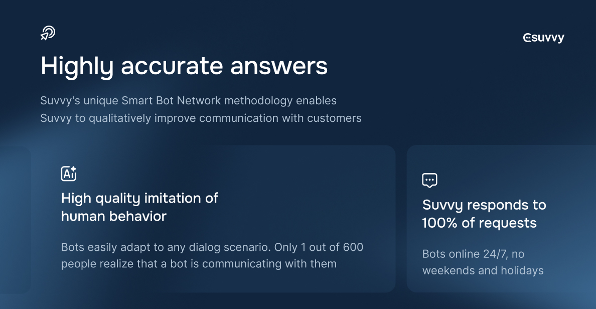 4. Profitable payment system (no subscriptions, payment only for actual answers from Suvvy).
