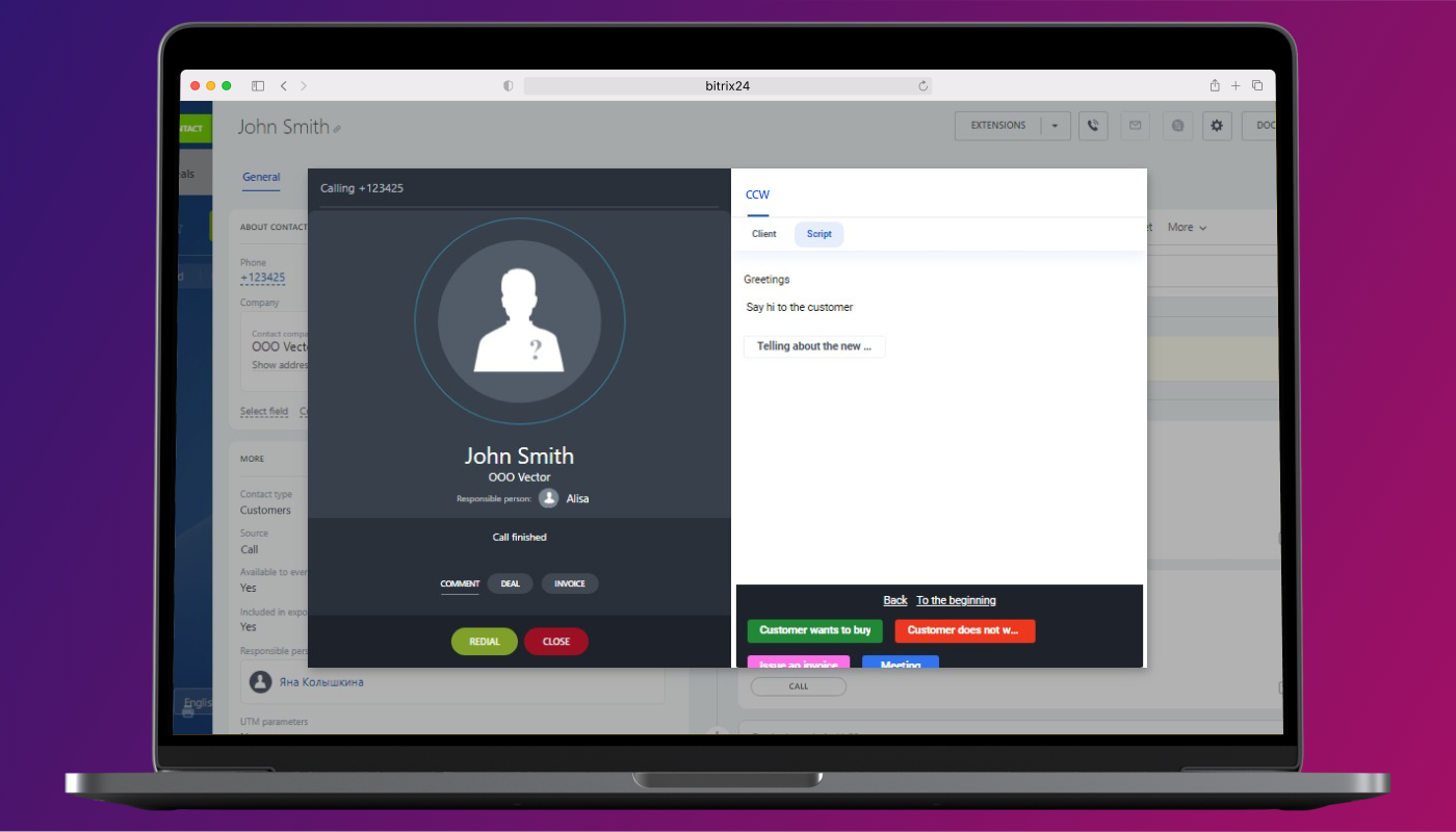 - customize the call card interface — during the call the operator sees only those fields that are needed for the work with the client and interaction history with him.