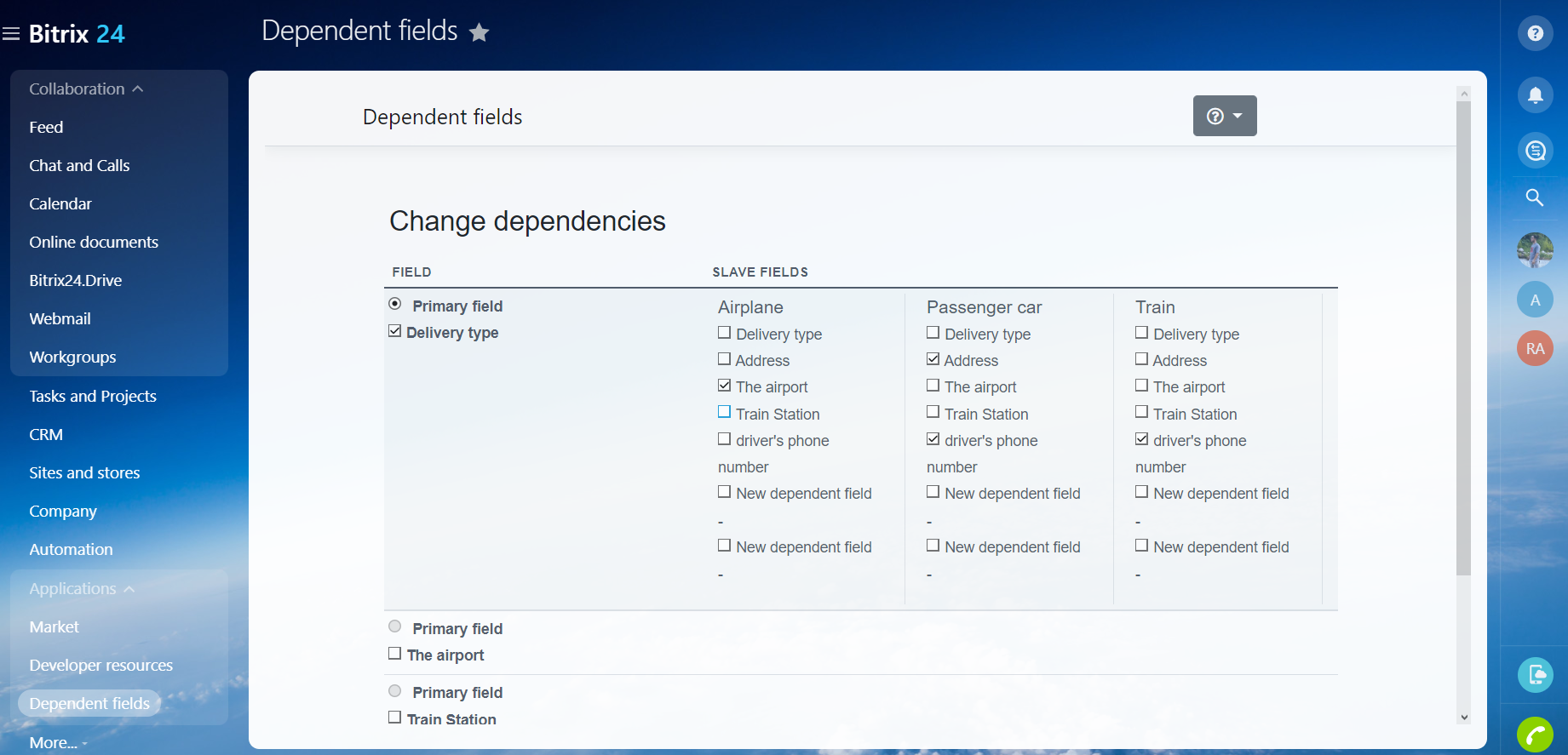 Dependent fields for a large number of fields. If your fields depend on each other, set up and enter only the required data.