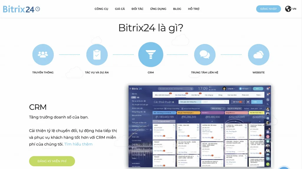Bitrix24 không chỉ là một ứng dụng giao tiếp. Đó là tổng hợp các công cụ hợp tác kinh doanh và quy trình làm việc. Bên trong hệ sinh thái của Bitrix24, bạn có thể nhanh chóng chuyển từ các dự án tiếp thị qua email sang trò chuyện nhóm và quay lại mà không cần phiền phức.