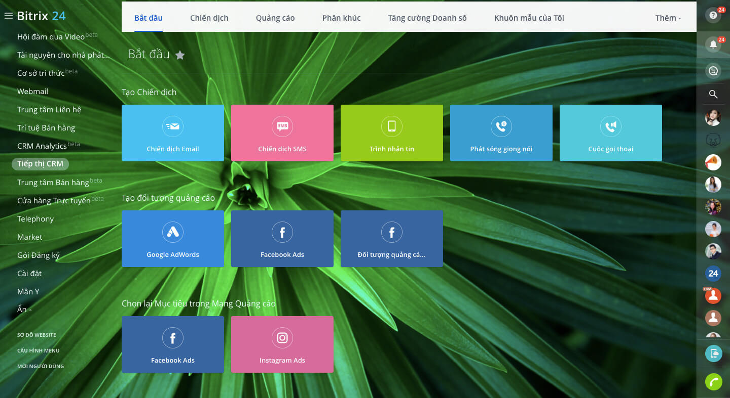 Bitrix24 là một nền tảng quản lý khách hàng tiềm năng hoàn chỉnh với nhiều công cụ để thu nhận khách hàng tiềm năng: biểu mẫu web, email, hệ thống điện thoại, chiến dịch quảng cáo trên Google và Facebook, v.v...