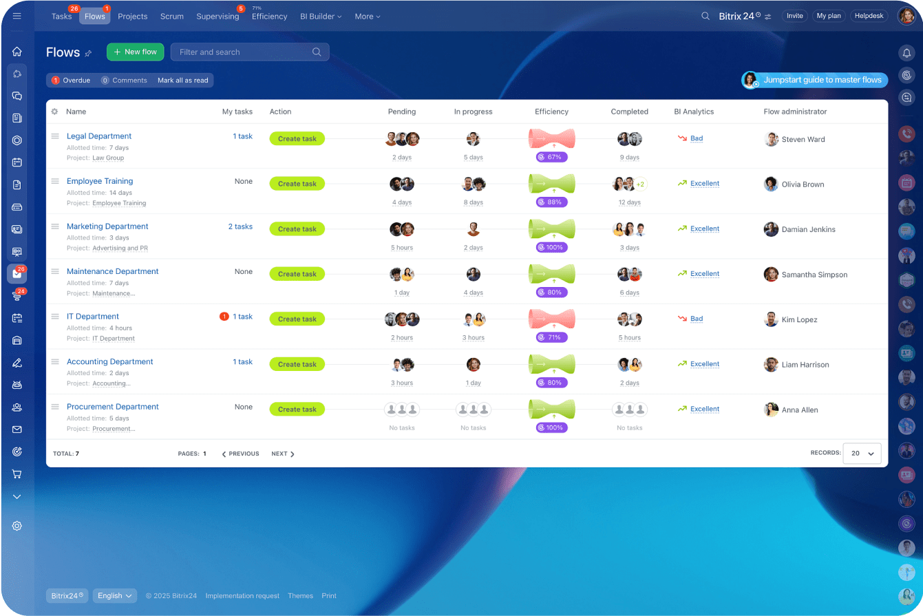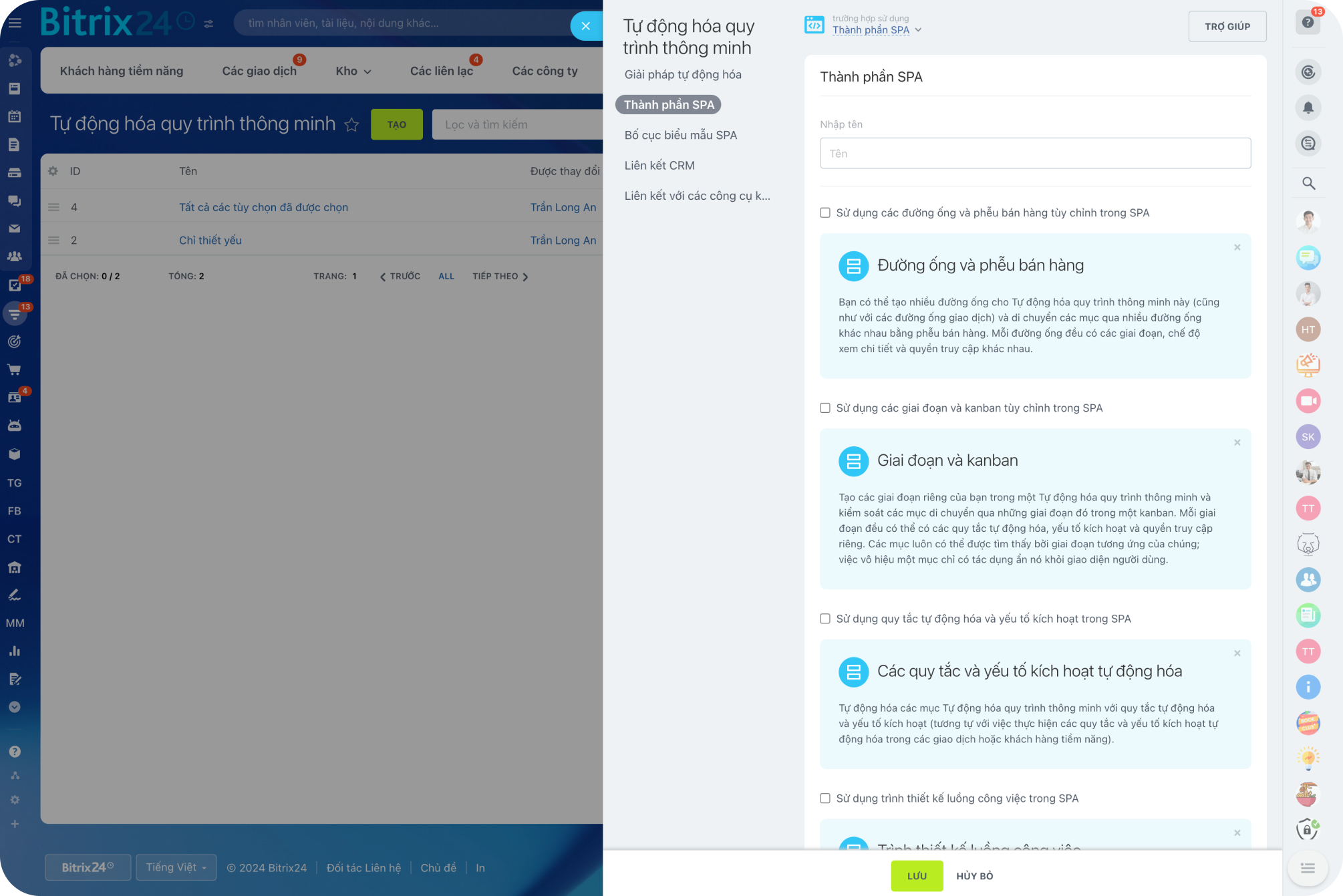 Một quy trình thông minh trong Bitrix24 là một loại phần tử tùy chỉnh được trong CRM cho phép bạn tạo các tình huống làm việc của riêng mình. Kết nối xa hơn các giao dịch, khách hàng tiềm năng và báo giá - tạo và tự động hóa thực thể của riêng bạn (danh sách nhà thầu, phễu mua hàng, sổ đăng ký tài liệu, v.v.).