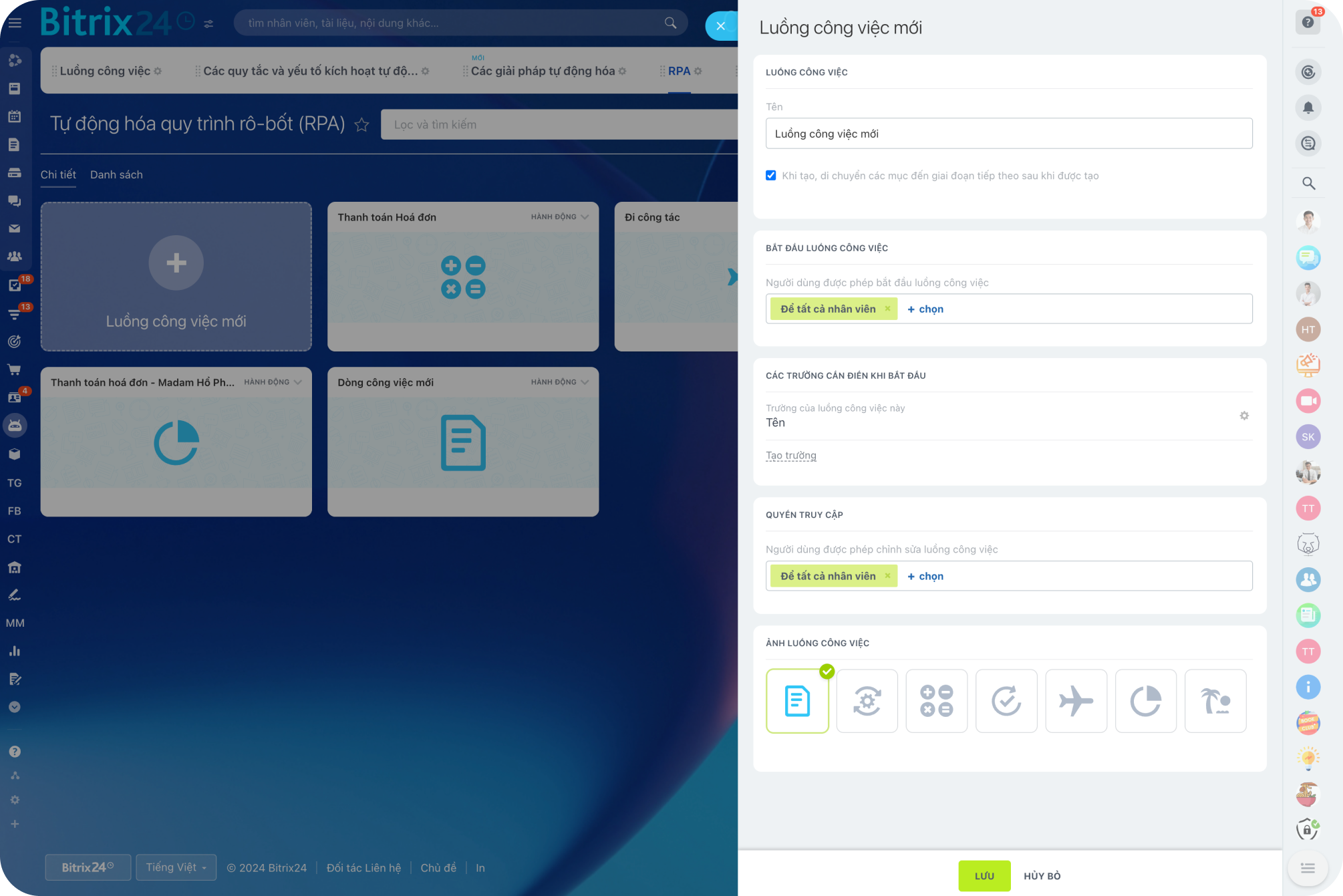 Các luồng công việc tự động của chúng tôi có thể được sử dụng để chuyển một tài liệu qua các giai đoạn phê duyệt, phân công tác vụ, gửi email, hoặc thông báo về một hạn chót sắp tới. Bằng cách này, bạn có thể phê duyệt một chuyến công tác, yêu cầu nghỉ phép, v.v...