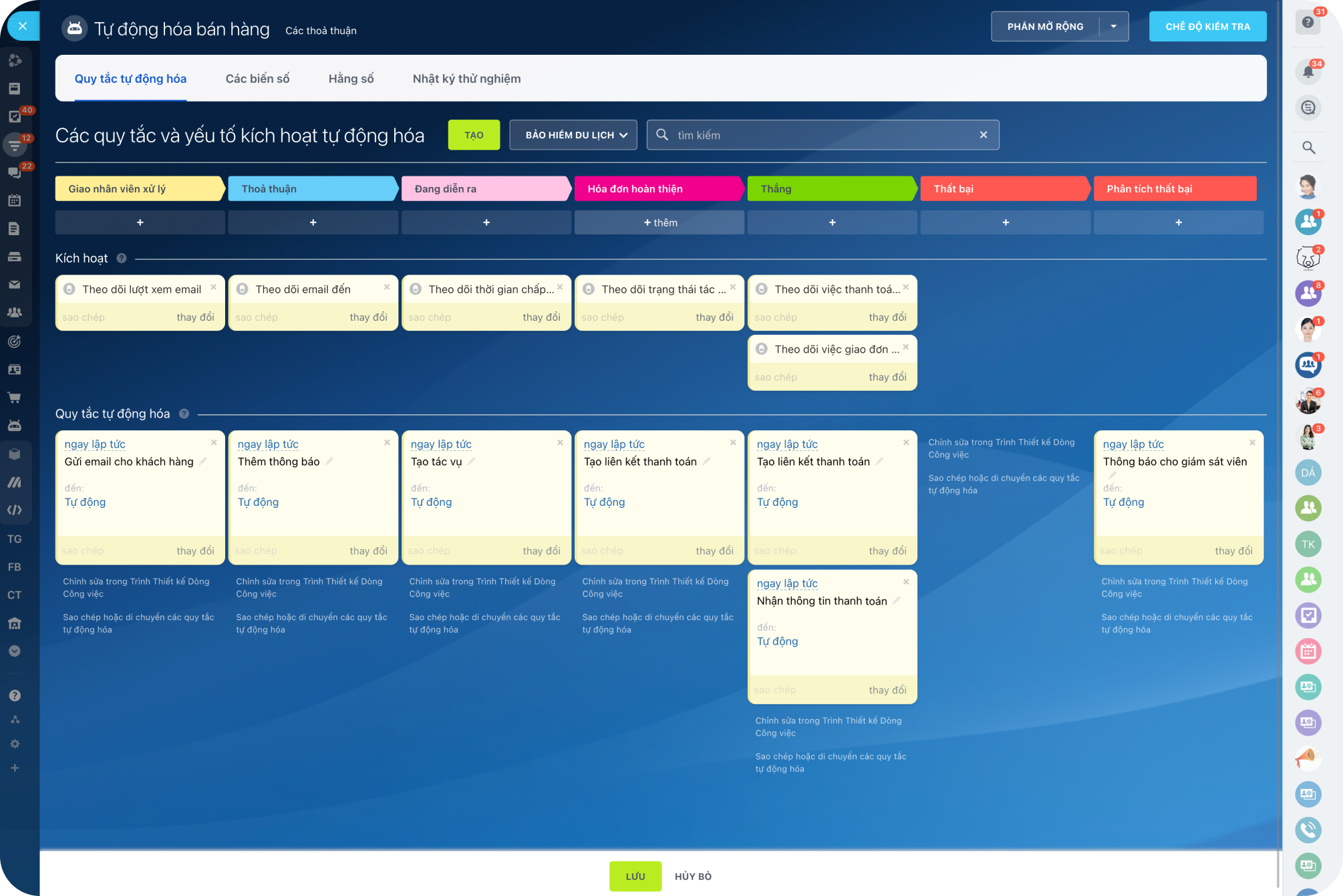 Bạn có thể tự động hóa nhiều loại hoạt động tiêu chuẩn, lặp lại như tạo một tác vụ, thay đổi một giai đoạn trong Kanban, trạng thái tác vụ, người được phân công, gửi thông báo cho một nhân viên cụ thể, v.v...